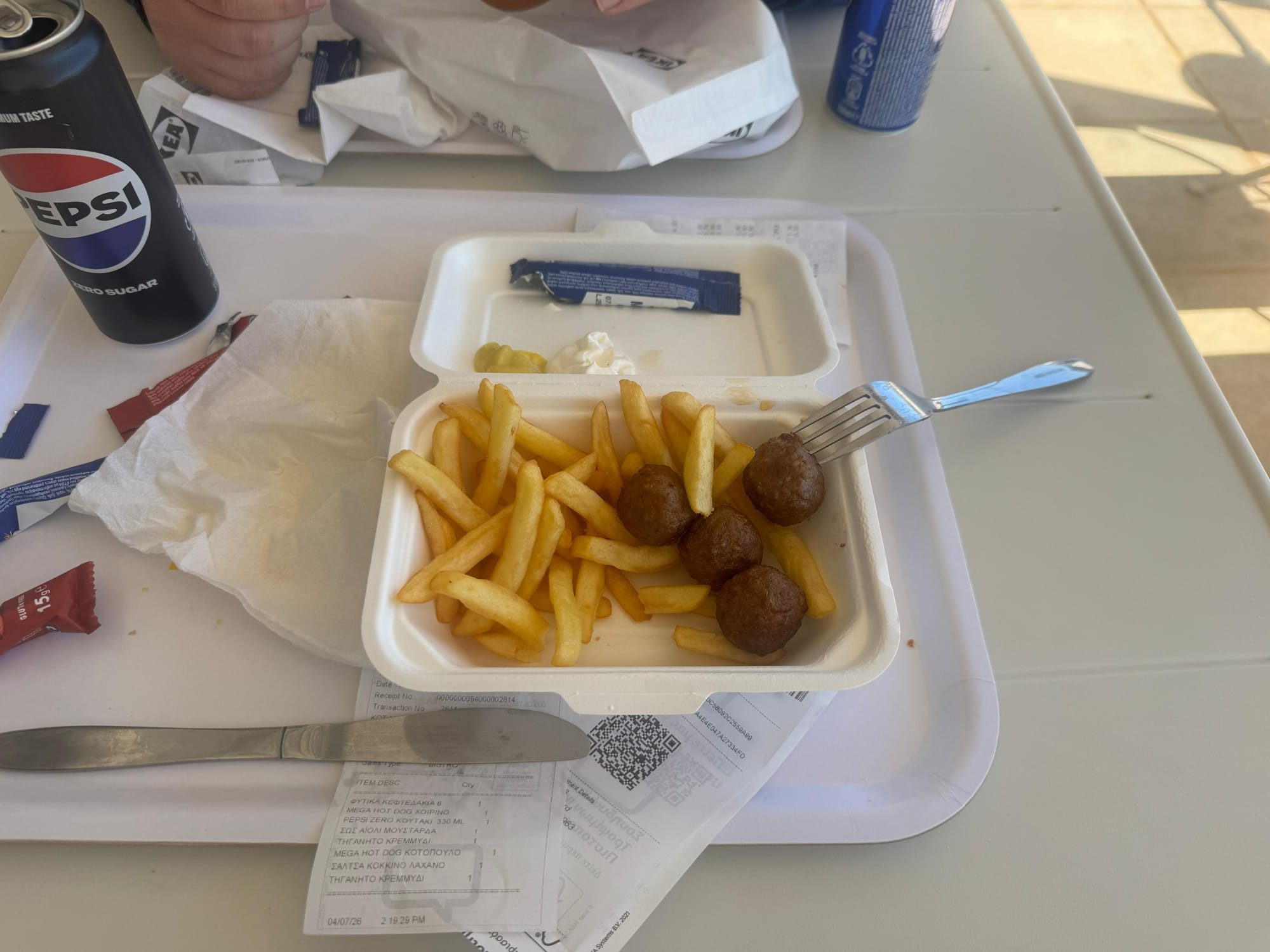 On Wednesday, we went to IKEA again for a short time because I specifically wanted to buy the vegan meatballs. It’s actually quite difficult to find good meat alternatives here in Crete, so I was happy to get them there.
