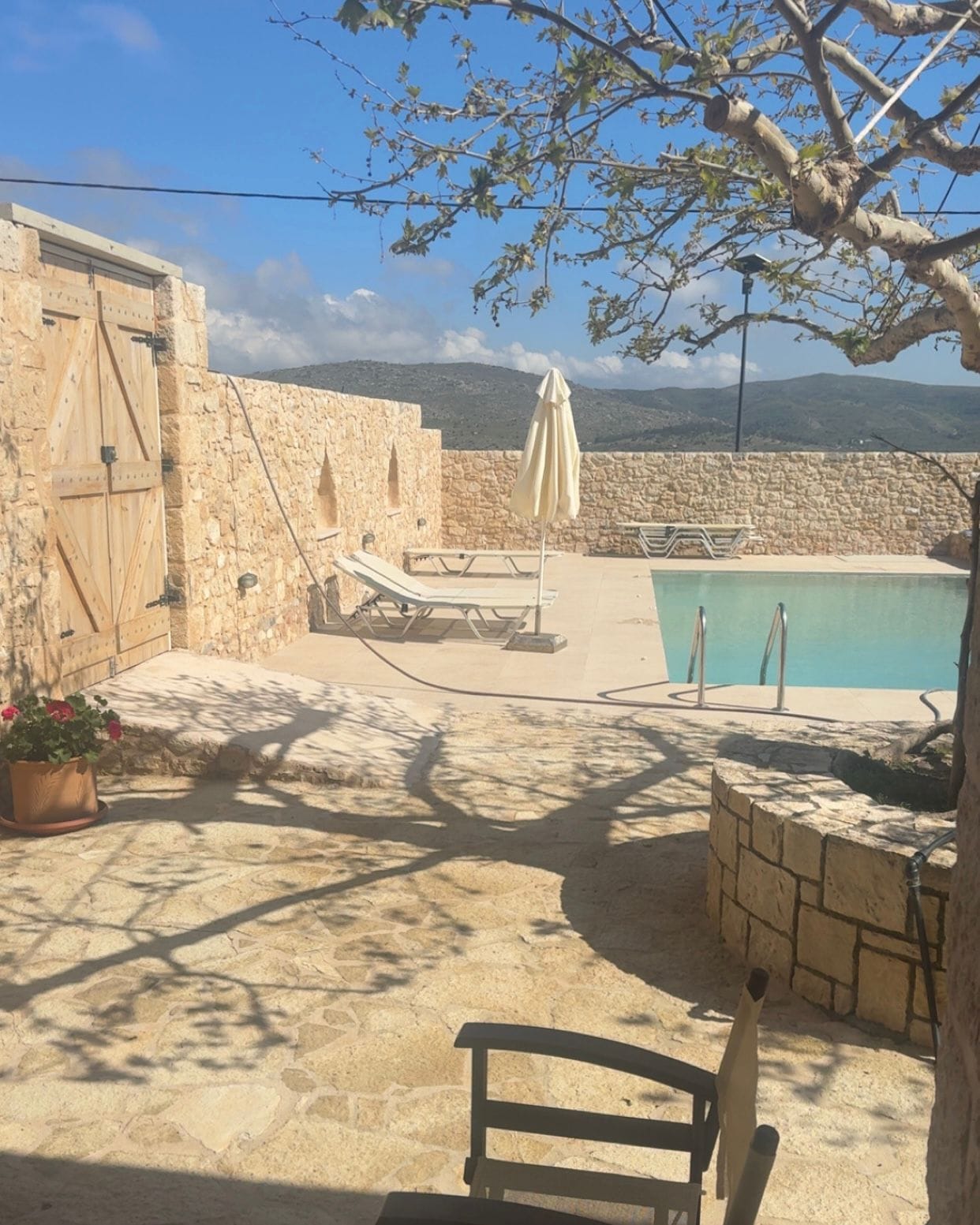 The weather got much warmer this week, which made a big difference. We spent more time outside, especially at the pool, and just enjoyed being in the sun. It also felt nice to have more calm moments in between, like walking through the village or sitting together in the garden.
