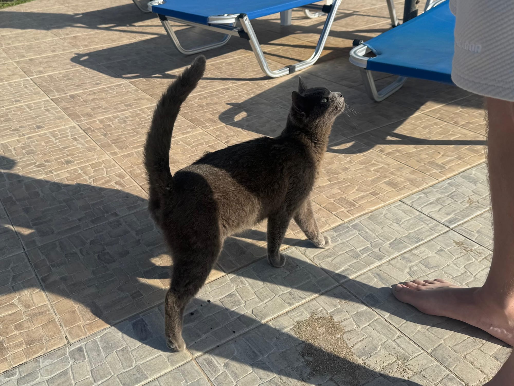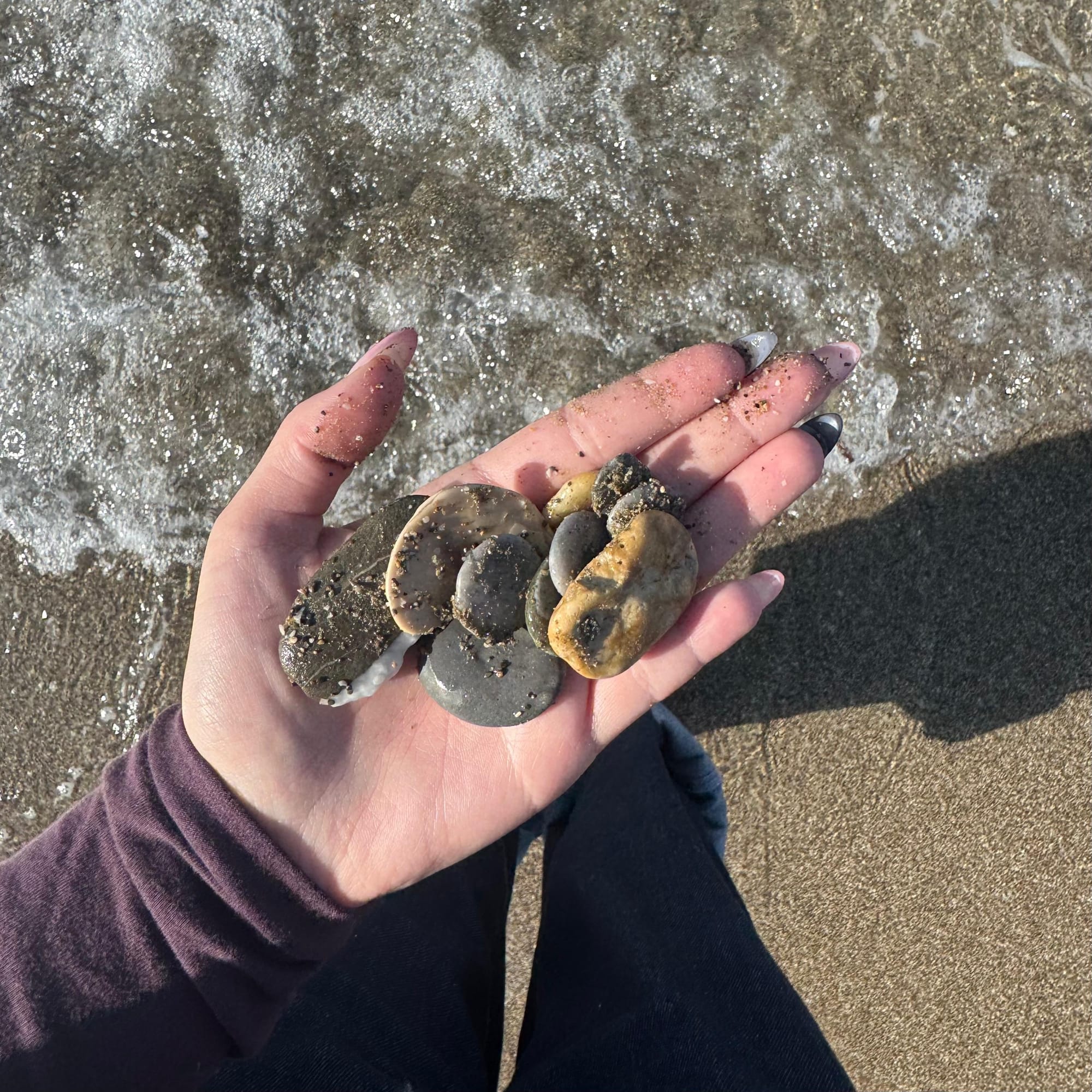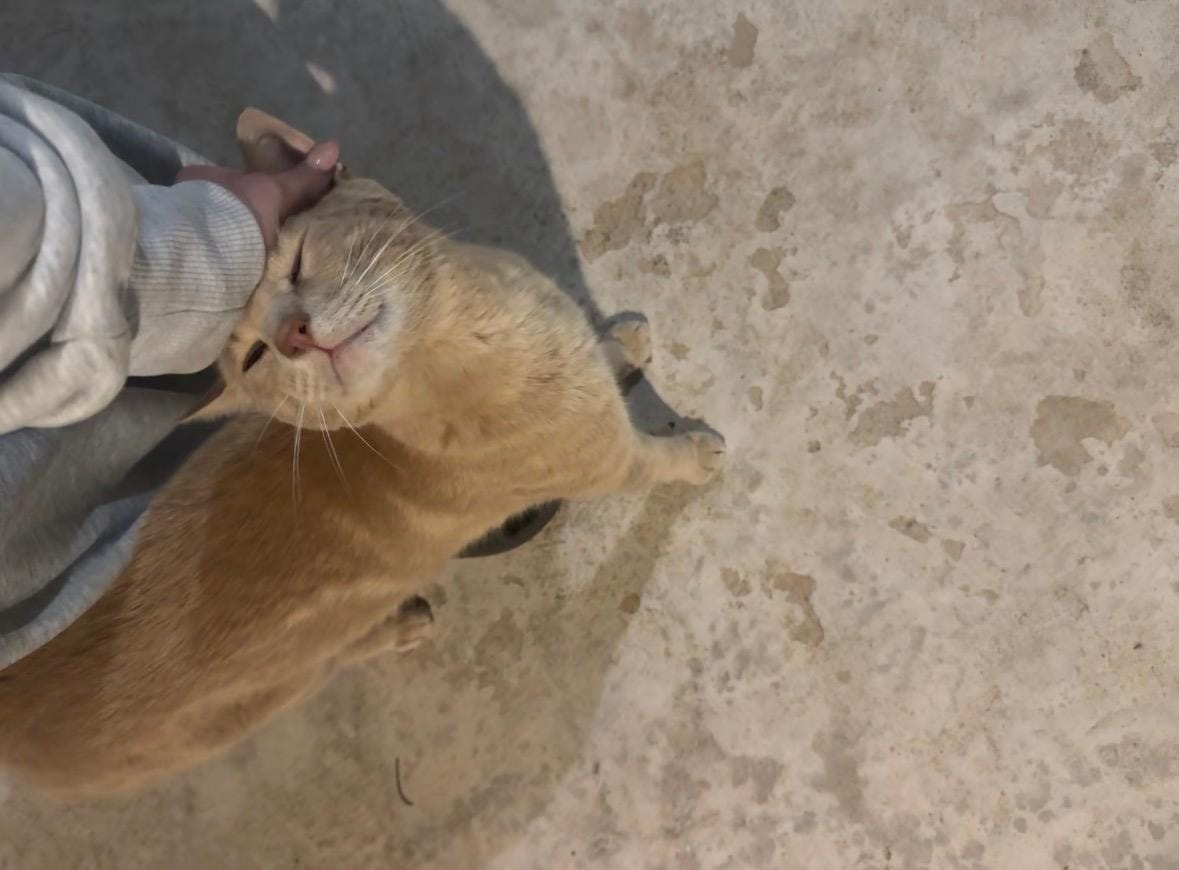 Later, we went to the beach, where we spent some time by the sea. We even collected a few stones, which was surprisingly fun. While we were there, we also saw a very cute cat, which made the moment even nicer.